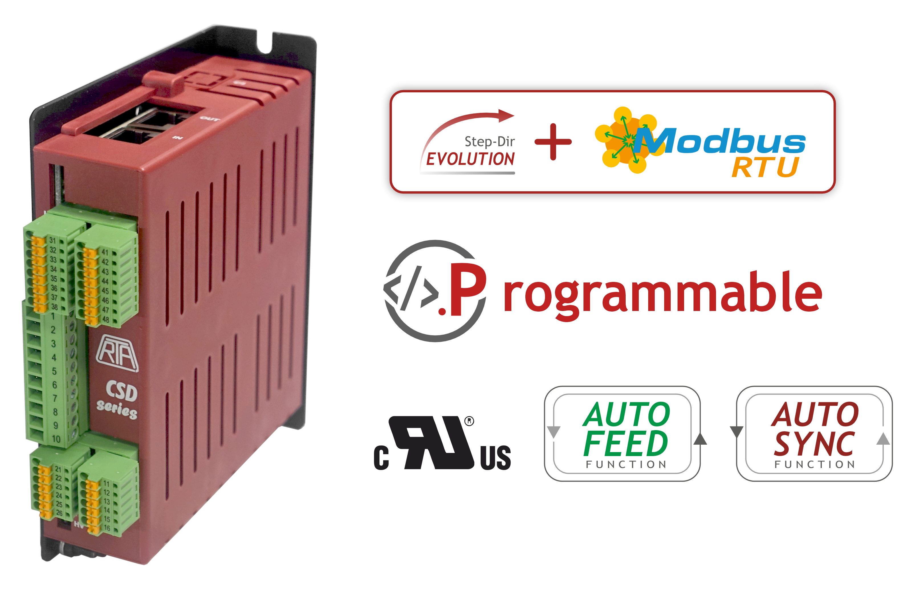 ► STEP&DIR, Analog Input, Modbus RTU RS-485 interface.