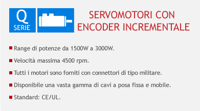 - I motori fino a 1000W sono forniti già cablati da R.T.A. con connettori circolari (Encoder; Fasi Motore; Freno), i prodotti a media/alta potenza sono forniti con connettori di tipo militare.