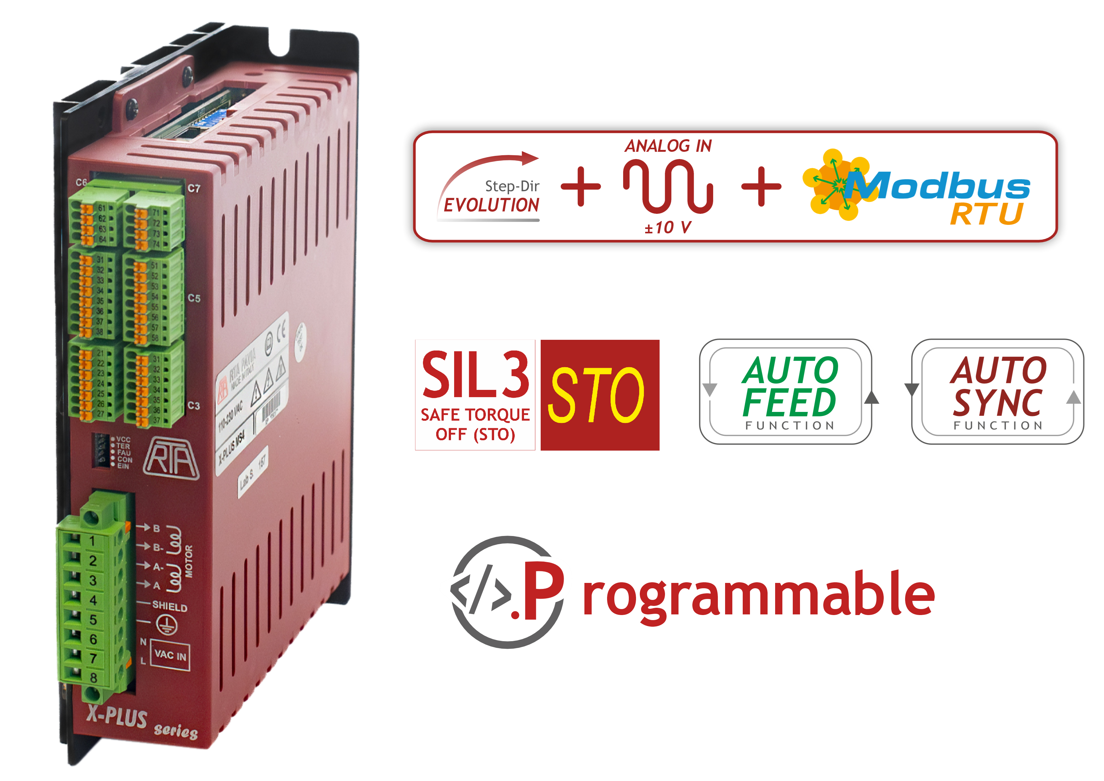 ► Nuovo azionamento per motori passo-passo prodotto da R.T.A. con alimentazione diretta da rete (da 110 VAC a 230 VAC) e funzione STO integrata.